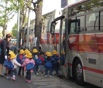 大型バス3台に分乗して乗り込んだら,ワクワク感がいっぱいです。