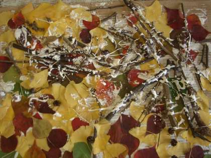葉っぱや木の実をひっつけたよ 2011/12./01