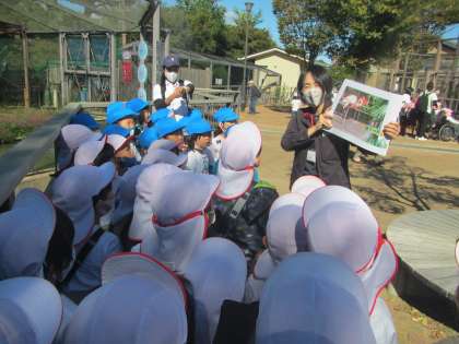 久しぶりに,全園児で動物園に遠足に出かけることができました。歩くときは5歳児がとてもやさしく3歳児の手をつないだり,見守ったりして,出かけました。4歳児は自分たちでしっかりと歩いていました。