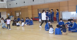 初めは少し緊張気味だった5歳児も,中学生のお姉さん・お兄さんの優しい言葉かけや『エスコート』のおかげで,最後には,すっかりリラックスして活動を楽しむ姿が見られました。いつもとは違う,様々な人たちとの関わりの中で・・・・また一つ『人と関わる楽しさ』そして『自分は,多くの人から大切にされているという安心感』を感じることができたひと時でした。
