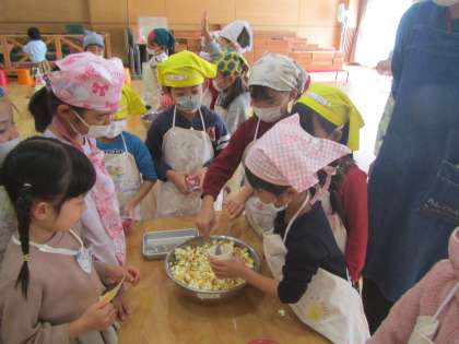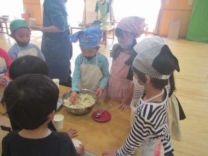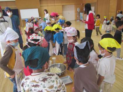 『3回までお替りできます!』という年長児のお知らせを聞いて,みんなおなか一杯いただきました。