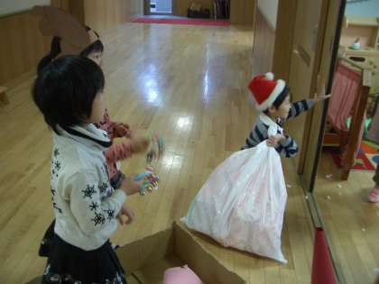 5歳児のゆり組サンタさんの目的地は3歳児の保育室のようです。