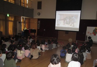 終業式では,『スライドショー』で2学期の生活を振り返り,子どもたち自身も『自分たちの遊びの軌跡』を感じていました。
