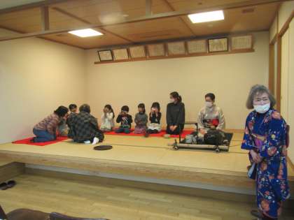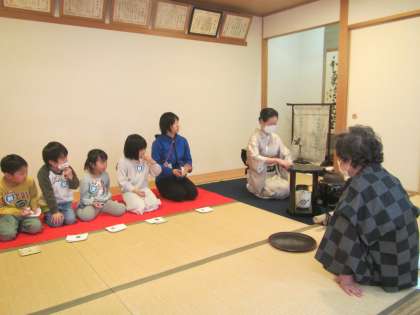 1月23日,3年ぶりのお茶会が行われました。小川学区女性会の皆様のご協力で,年長児たちが,和のとても素敵な体験をさせていただきました。