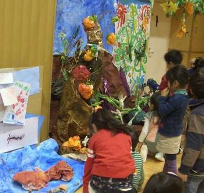 園内展では,絵だけではなく,つくったものもいっぱい展示してあります。