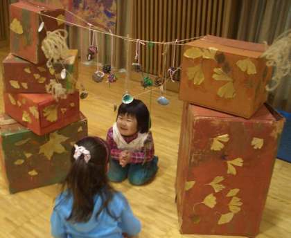 5歳児は幼稚園大会で「ももたろう」の表現遊びをしました。