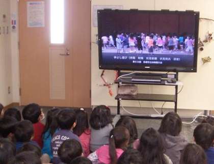 ゆり組が「ももたろう」の表現あそびをしているところが流れていました。