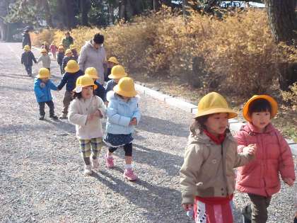 幼稚園に到着したのは,11時20分でした。先生たちの予測より10分も早く歩くことができました。「みんなよく歩けたな」って感心しました。すごいパワーをもった子どもたちだなと改めて思いました。「すごいね。よく頑張ったね」と子どもたちに声をかけました。お家でも「よく歩いたね」とどうぞほめてあげてくださいね。