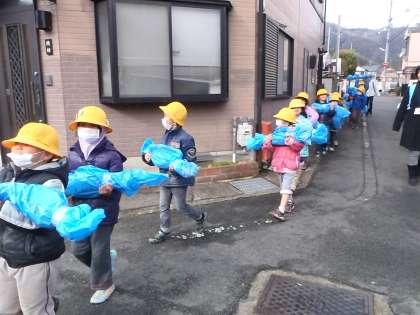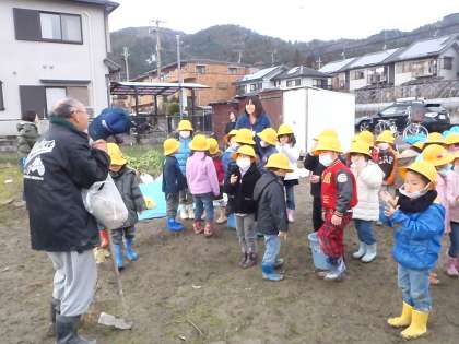 いつも畑の先生が準備をして,子どもたちが活動しやすいようにしてくださいました。「幼稚園の子はようがんばるな」といつもほめてくださっています。いっぱいお世話になったので,最後にみんなで「ありがとうございました」とお礼を言いました。また新町小学校に行く子どもたちはお世話になることでしょうね。