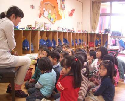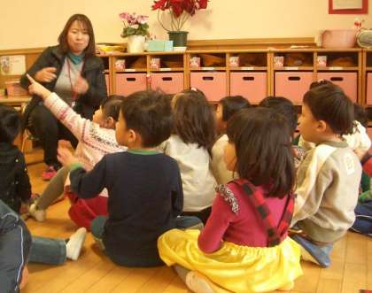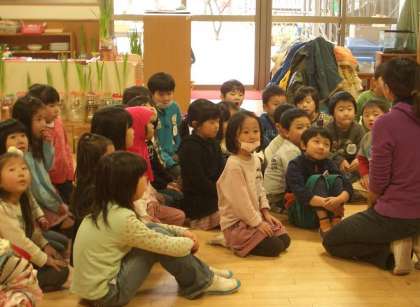 幼稚園では子どもたちが好きな場所で遊んでいます。