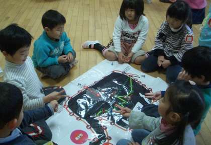 そんな時にも,ゆり組の子どもたちが,ばら組の遊び方に合わせてルールを簡単にしたり,融通をきかせたりして遊んでいる姿が見られます。