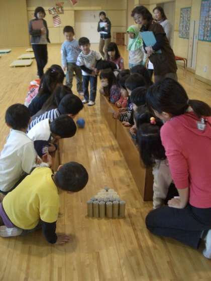 今日も5歳児のゆり組は,みんなで集まって何かに向かって一生懸命に取組んでいました。