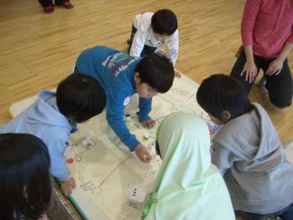 それぞれの遊びのコーナーの準備ができたら,みんなで話し合いをしました。