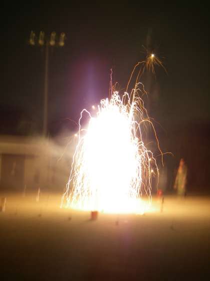最後のお楽しみは,毎年恒例の小川消防分団による吹き上げ・打ち上げ花火です。