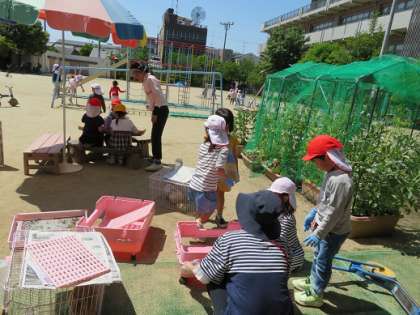 年長組のお当番活動が始まっています。友達と力を合わせたり,うさぎたちの気持ちに寄り添ったりしている姿がみられます。
