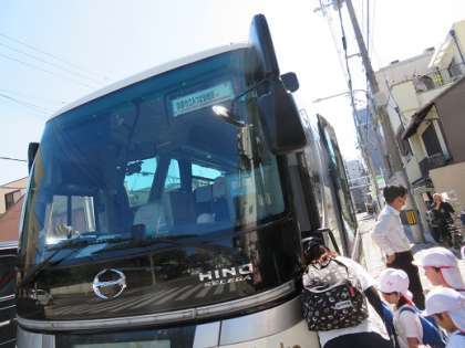大きな観光バスがお迎えに来てくださり,わくわくした気持ちで出かけていきました。