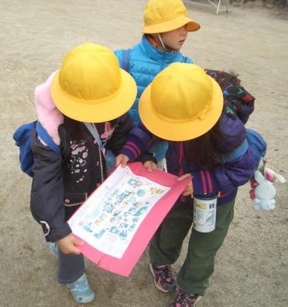 子どもたちは悩んだ末に,地図の裏側に書いてあるグループのメンバーの名前の順に行きたいところを決めることにしたのだそうです。