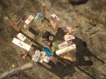 そのかわいい木片もかざってあげようということで,釘を金槌で打って針金でぶらさげることにしたようです。