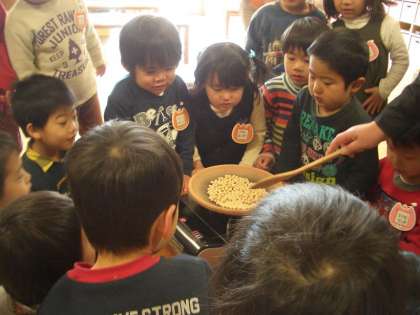 ところで,ばら組の子どもたちはエンドウマメを節分に撒くのだと思っていたようで,