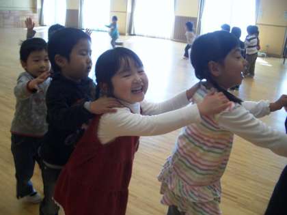 私が遊戯室から出るのと同じくして,3歳児のたんぽぽ組も遊戯室に入ってきました。