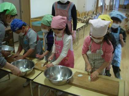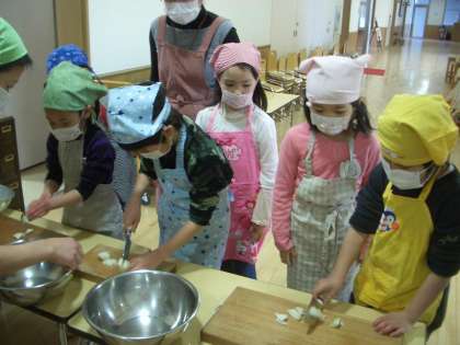 大根,人参,サツマイモ,コンニャク,タマネギ,白菜をがんばって切ってくれました。