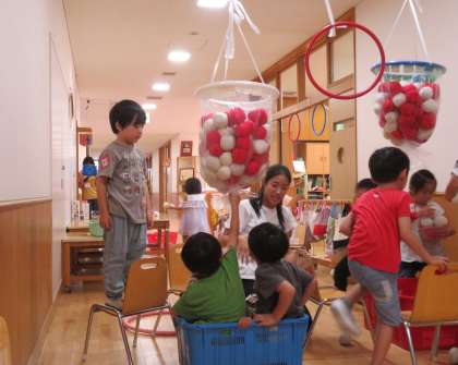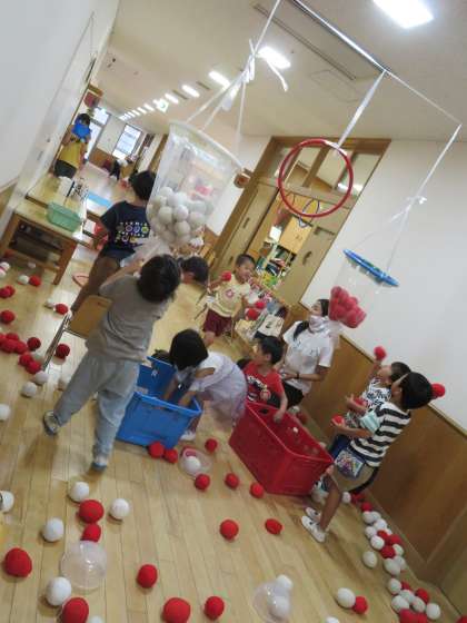 玉入れ用の紅白球を使って,年中児の楽しい遊びが始まりました!