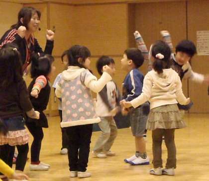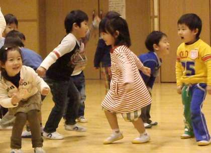 もも組のうたは「せんせいとおともだち」,あそびは「みんなで鬼退治!!」です。