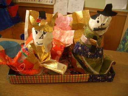 幼稚園のホールにお雛様を飾り,毎日眺めているうちに,自分でもお雛様をつくりたくなりました。