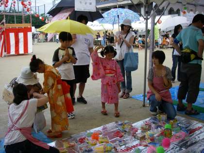 でも雨の中,頑張ってきてくれた子どもたちがたくさんいました。。久々に出合って少し照れている人もいました。たくさんのおみやげを持って嬉しそうにしている人もいましたし,お友達に出会って喜んでいる人もいましたね。出かけるつもりでいたのに雨で出そびれた人もいたのではないかなと思います。せっかくの楽しいお祭りだったのに雨が降ってちょっと残念な夕暮れでした。