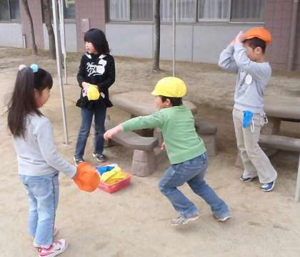 園庭へ出て,幼稚園で大好きだった遊びのところへ駆けていきます。
