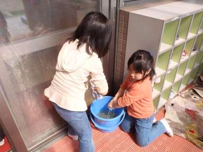 1年間使ってきたロッカーをぞうきんでふき,おもちゃもふき,保育室や廊下の床もふき・・・