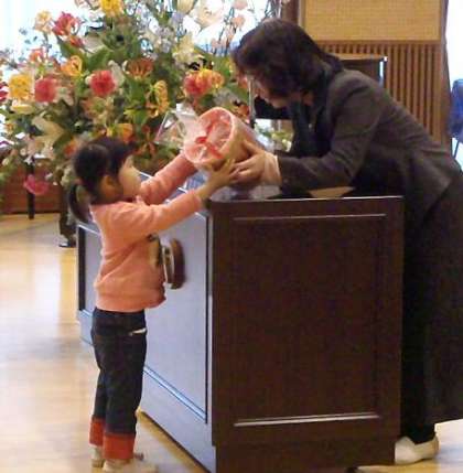 たんぽぽ組ともも組の子どもたちも記念品をもらって嬉しそうです。