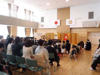 気持ちのよい春の日,3歳児に42名,4歳児に1名の新入園児を迎えることができました。