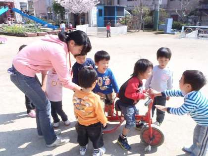 とつぶやいたり,中には乗りたい思いを言葉にできずにストレートにハンドルを握りにきたりする子どもがいました。