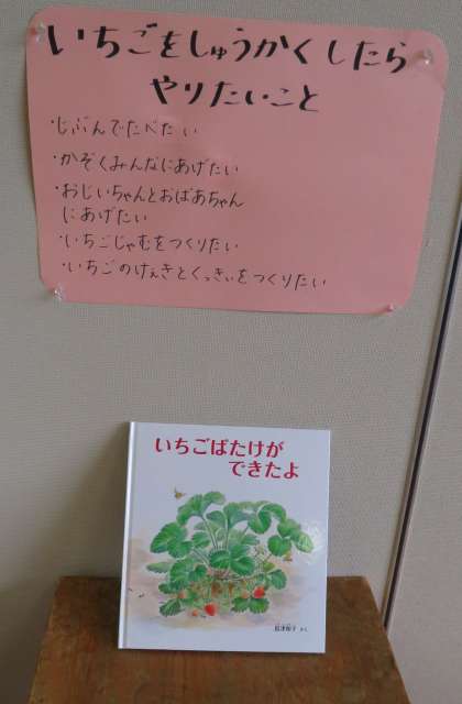 たくさんイチゴができたらみんなで何をしたいかな?と話し合って,心あたたまるみんなの『やりたいことリスト』ができていました。