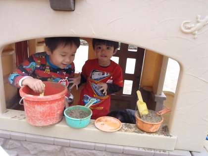 中には,砂場から道具を持ってきて何の違和感もなくすんなり入っている子どももいます。
