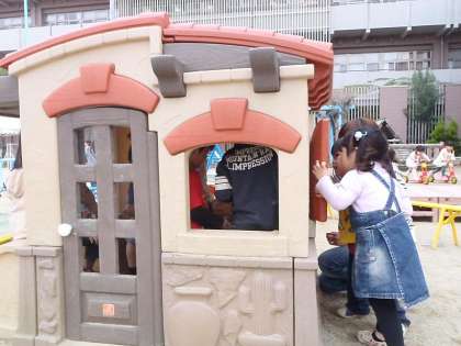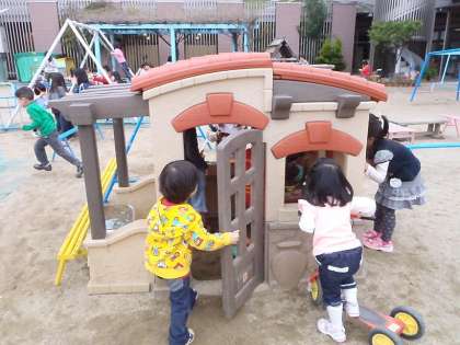 幼稚園の園庭にはかわいいお家があります。