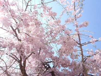 広場の八重桜が満開です。