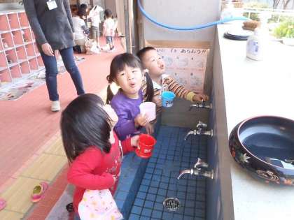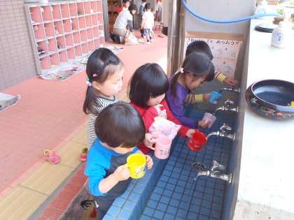 幼稚園では風邪などの予防に向けて,手洗いとうがいを励行してます。
