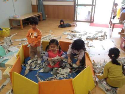 そこで,たんぽぽ組には,新聞紙とプールを出すことにしたようです。