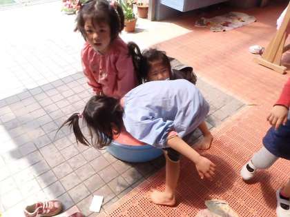 遊んだ後には,ちゃんと自分で手足をきれいにすることができるようになりました。