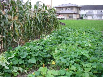 8月19日暑い中,食育農園班のお母さん方が,西賀茂農園に行ってくださいました。帰ってこられて「『ポップコーンが鳥に食べられているよ』ということを地域の方が言っておられました」ということを言ってくださいました。