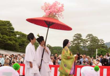 年長のクラスでは,5月の葵祭の見学の経験から『葵祭ごっこ』が始まっています。