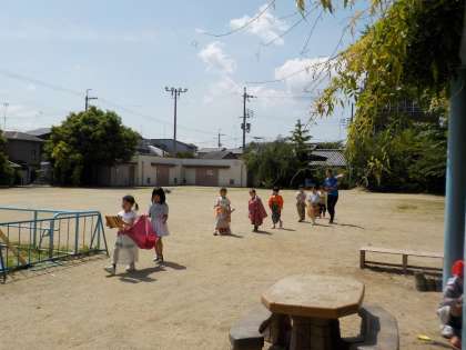 西陣地域の皆様から頂いた様々な『和』の布地を生かして,子どもたちは『姫』や『殿』になりきて,行列をしたり・・・弓矢を作ったり・・・と子どもたちなりに『伝統』と親しむことを楽しんでいます。