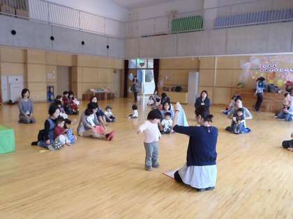 毎週火曜日の9時30分から11時30分の間,幼稚園の2階の遊戯室やホール,園庭を使って親子で遊んでいただいています。