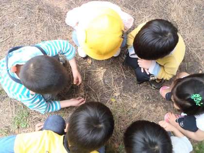 数人が円陣を組んでのぞきこんでいる真ん中にはみみずがいました。