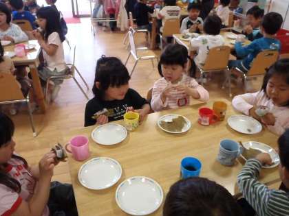 その後は,それぞれ保育室に入っておいしい柏餅をいただきます。