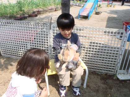 そのためには,頭から「やさしくしなさい」と言葉で教え込むのではなく,まずはウサギのことを大好きになること,そしてかかわりを通して相手の気持ちに気づいていけるように声をかけたり援助したりしていきたいと思っています。