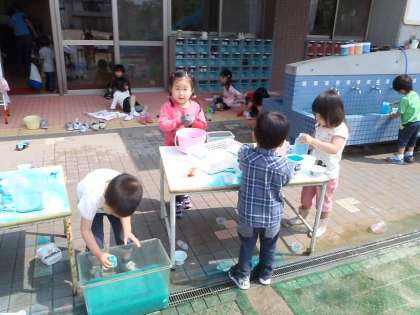 それぞれが黙々と水をくんだり,入れたり,流したり,思い思いに楽しんでいます。