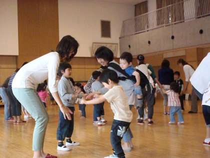 5歳児は遊戯室でクラスで遊んでいる様子を見ていただいたり,一緒に遊んだりしました。